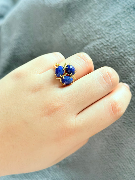 Bague Fleur Dorée avec Pierre Naturelle – Ajustable et Plaqué Or 18K