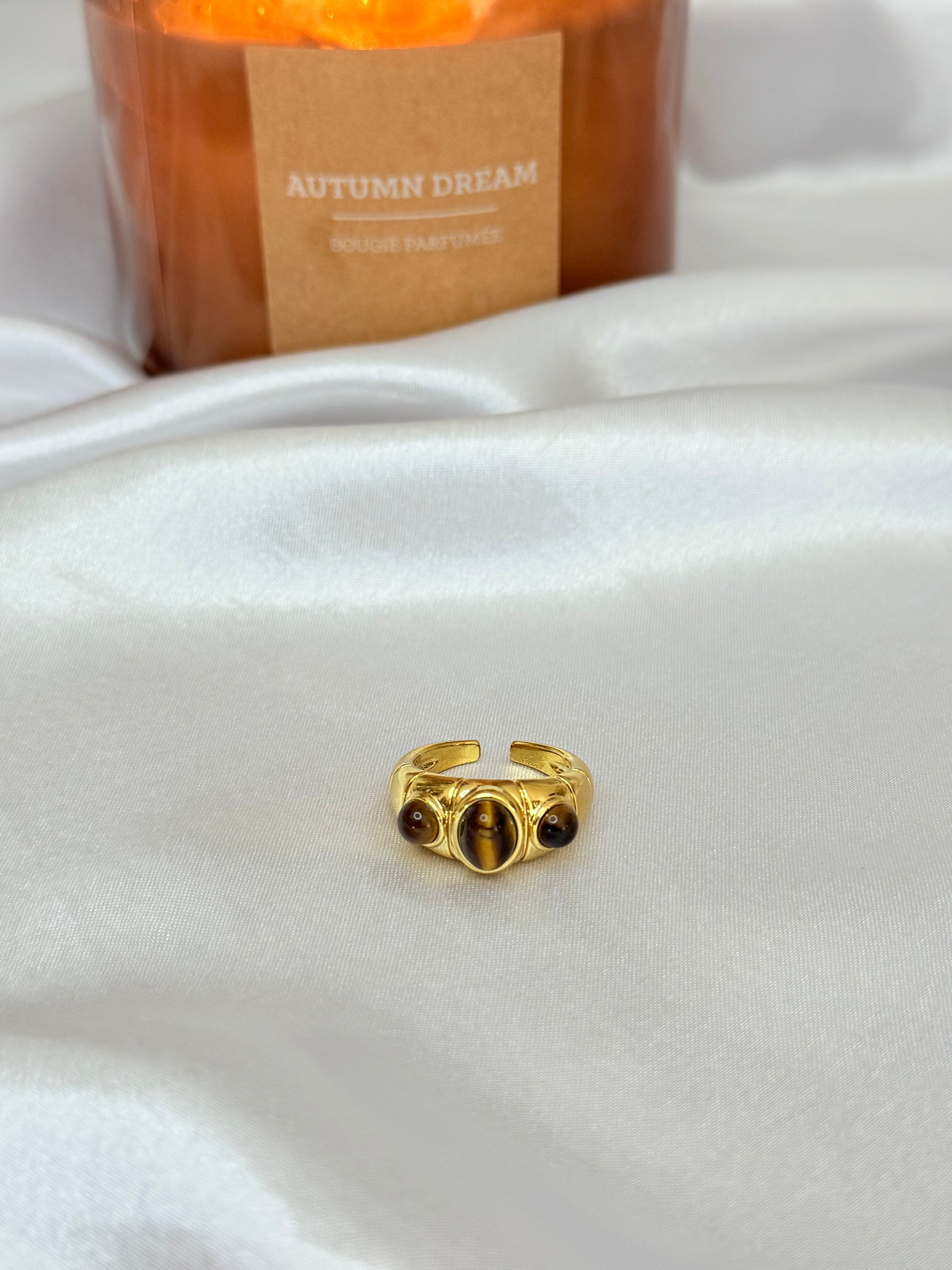 Bague Gilmore en acier inoxydable et pierre naturelle Oeil de tigre .