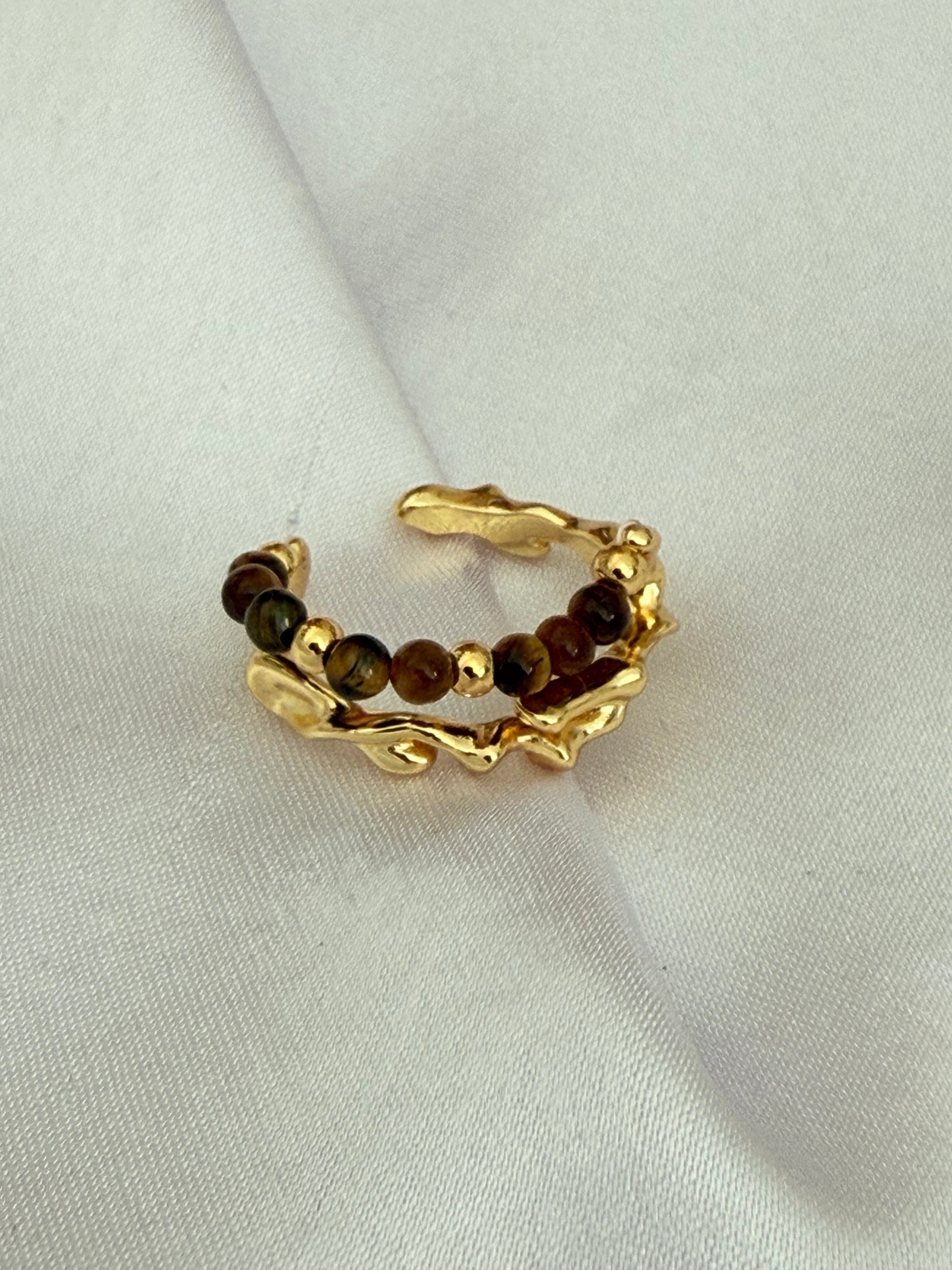 Bague en acier inoxydable et pierre naturelle : Oeil de tigre