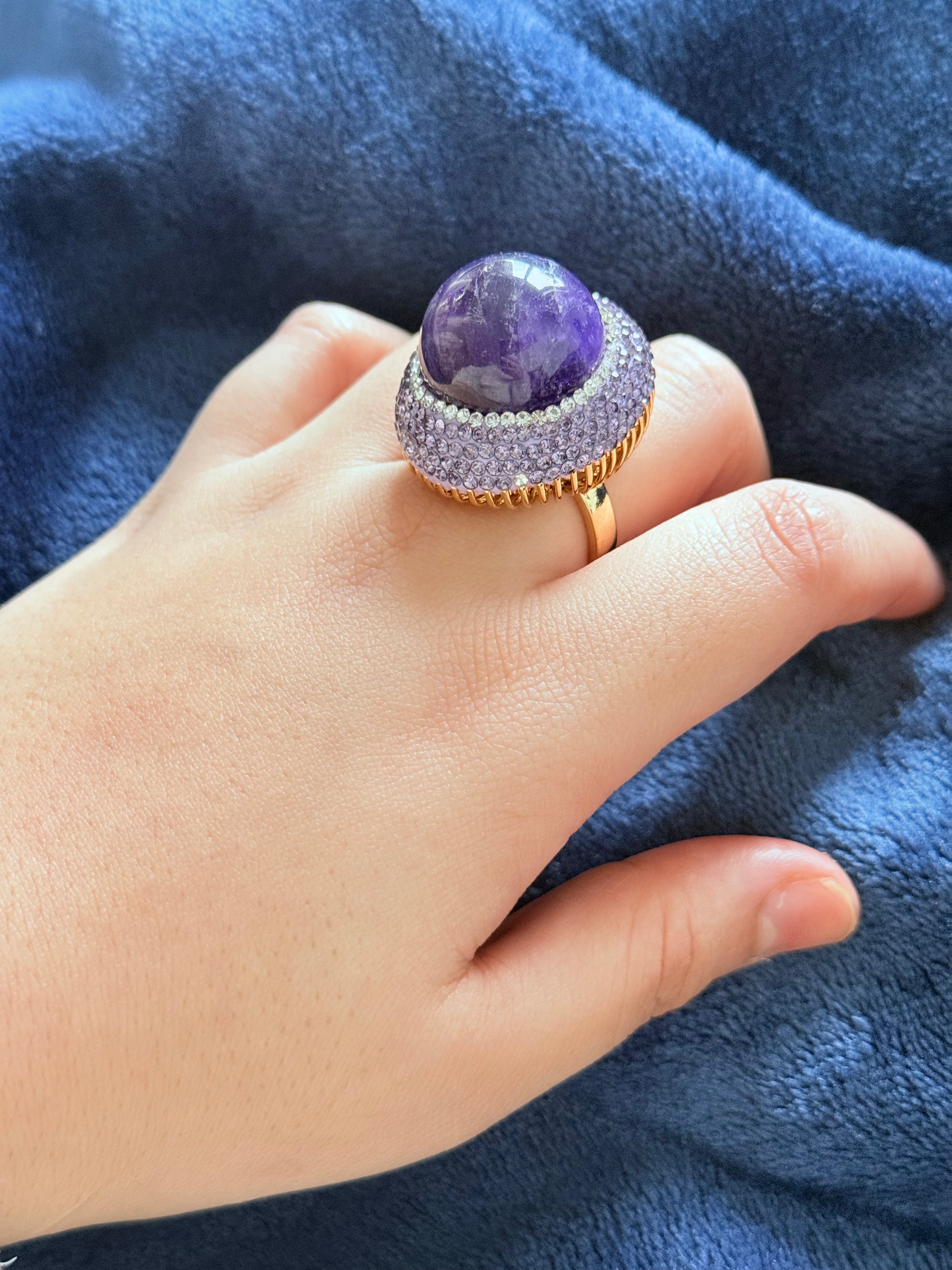 Bague imposante en pierre naturelle Améthyste ornée de strass ✨️