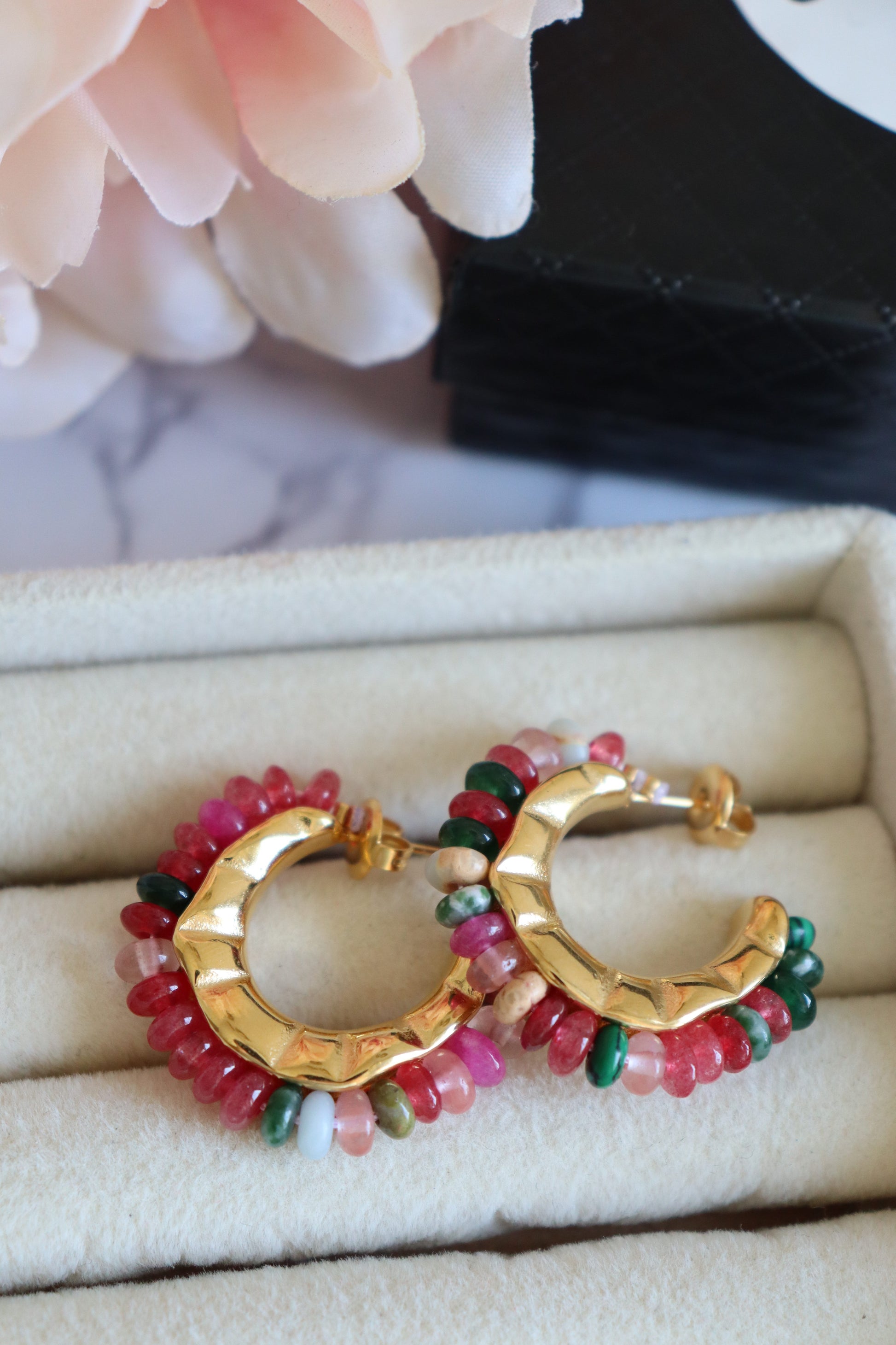 Les boucles d’oreilles keith sont en acier inoxydable, Pierres ornementale de couleur mélangée naturelle.