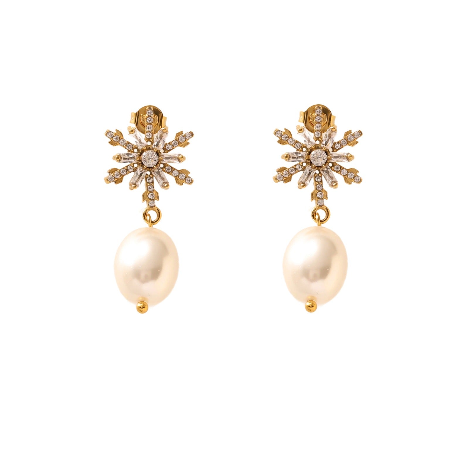 Les boucles d’oreilles Winter sont en acier inoxydable / Perle naturelle .