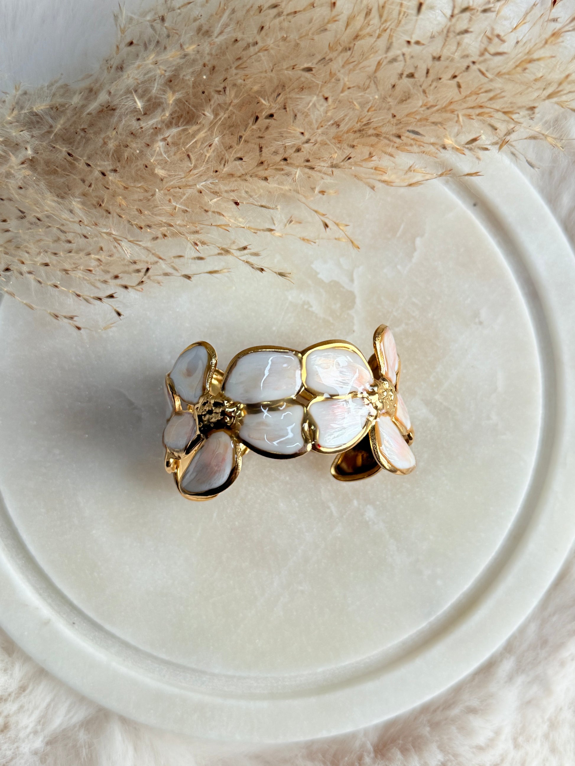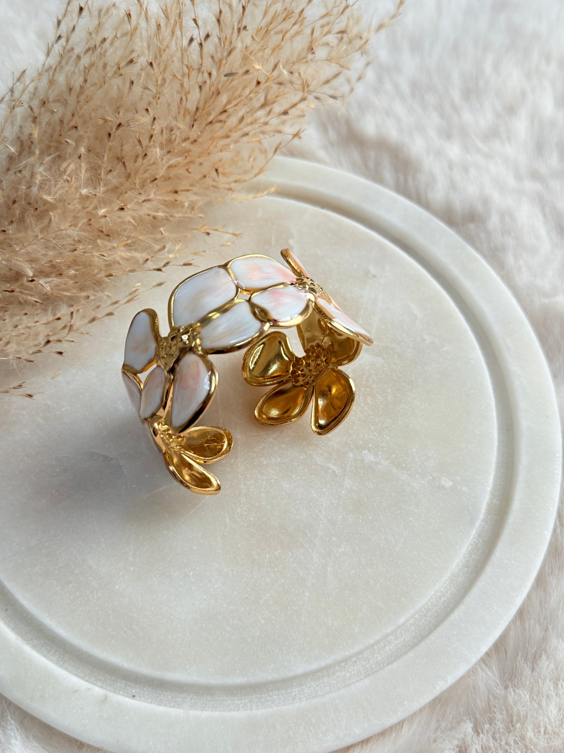 - Le bracelet Flora est en acier inoxydable en plaque or 18 carats , ne rouille pas , ne change pas de couleur.