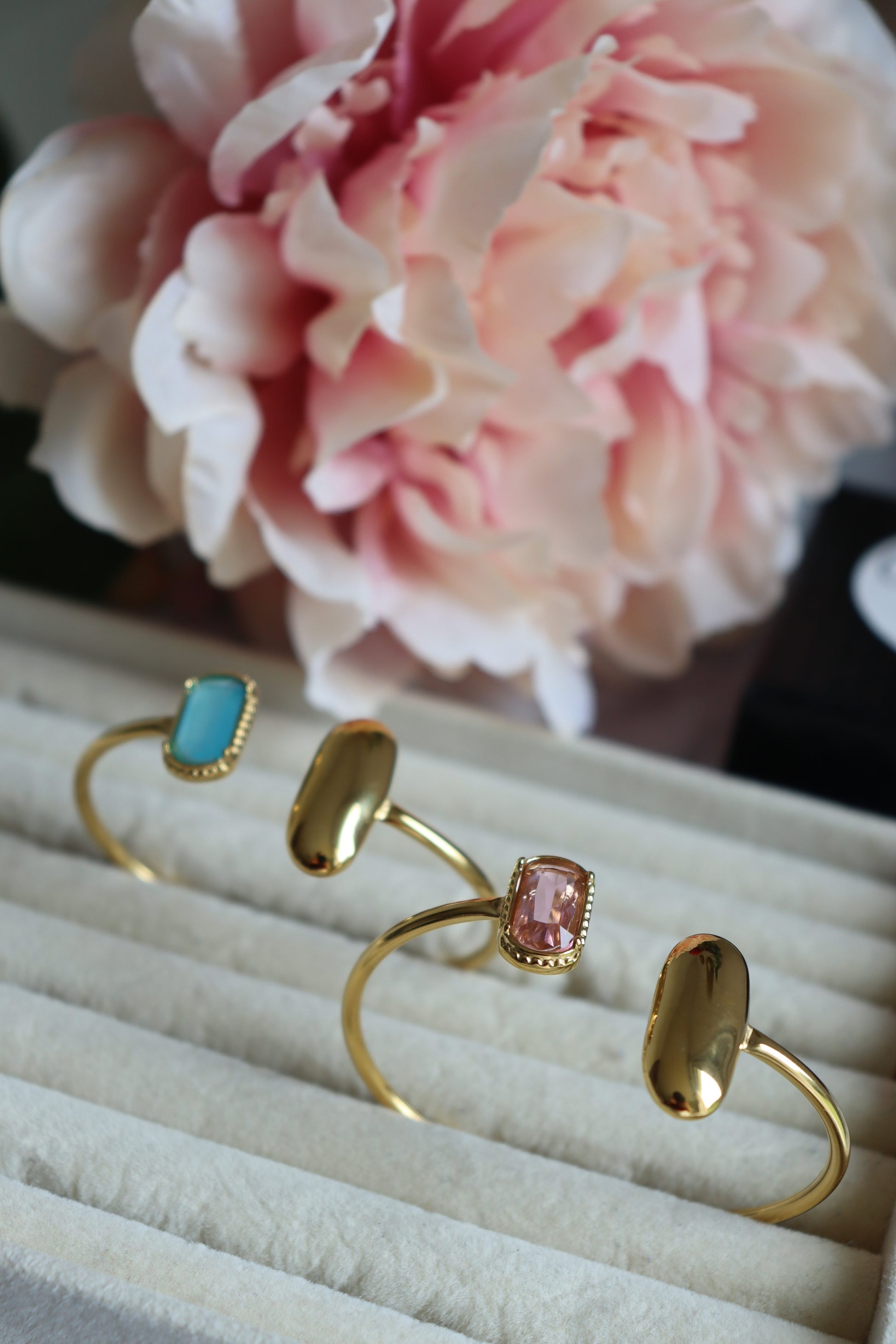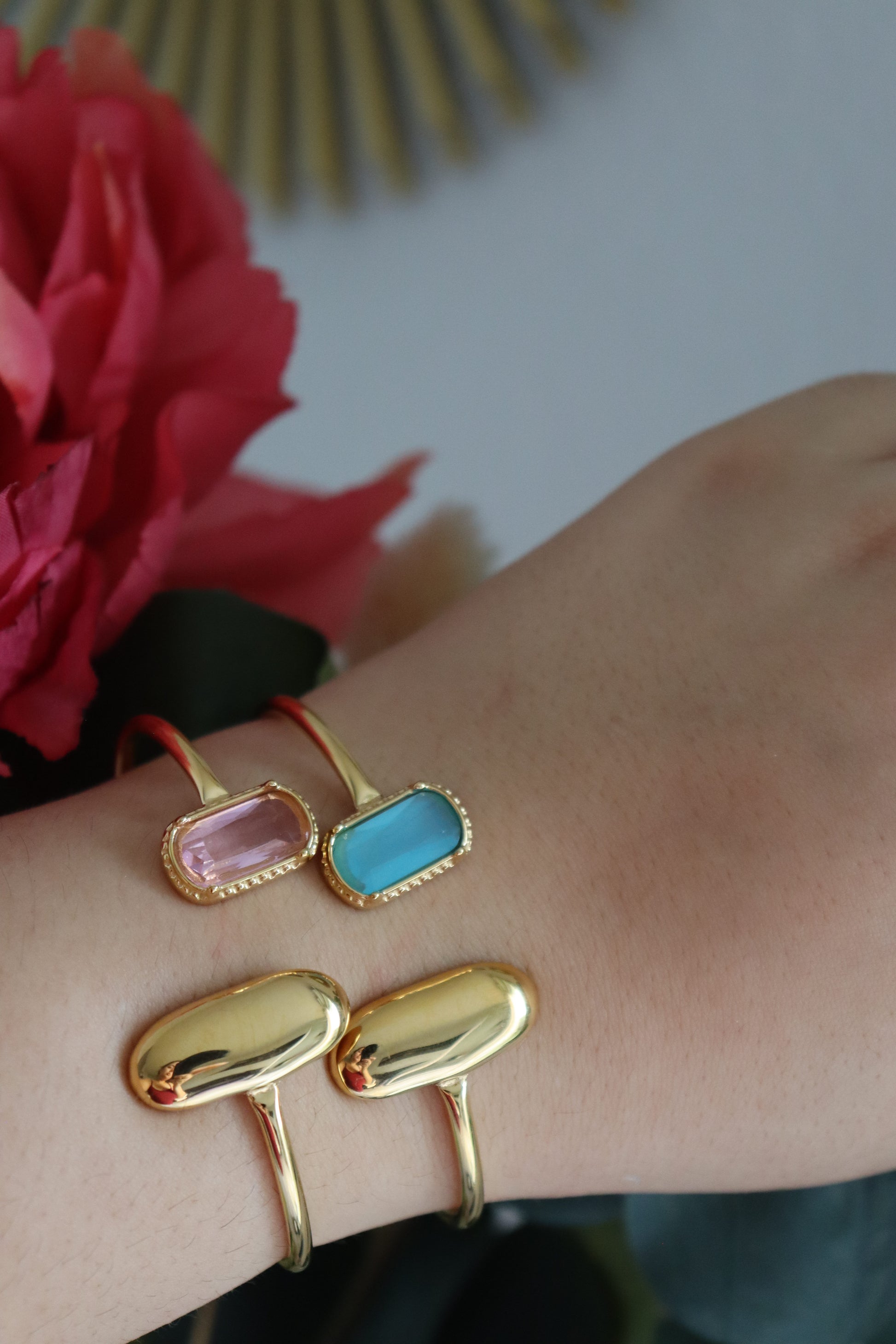 Le bracelet Jonc Sherine bleuest en acier inoxydable, ne rouille pas , ne change pas de couleur.