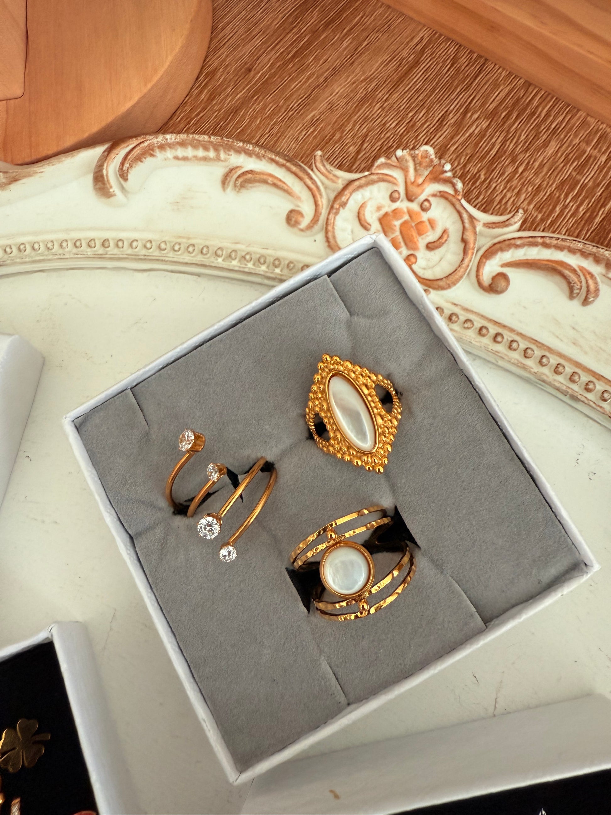 Coffret lot de 3 bagues : Pierre de soleil Zircon