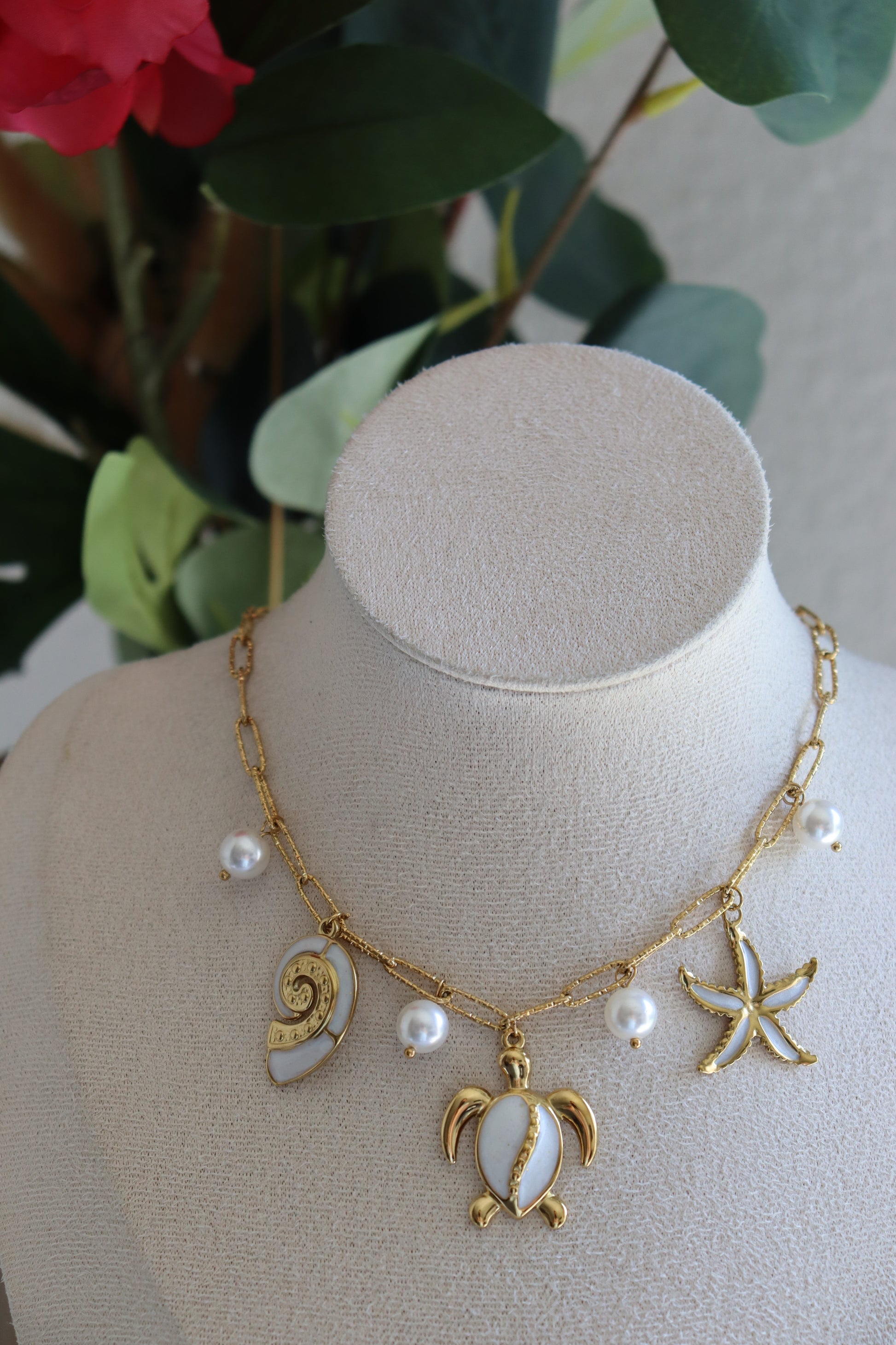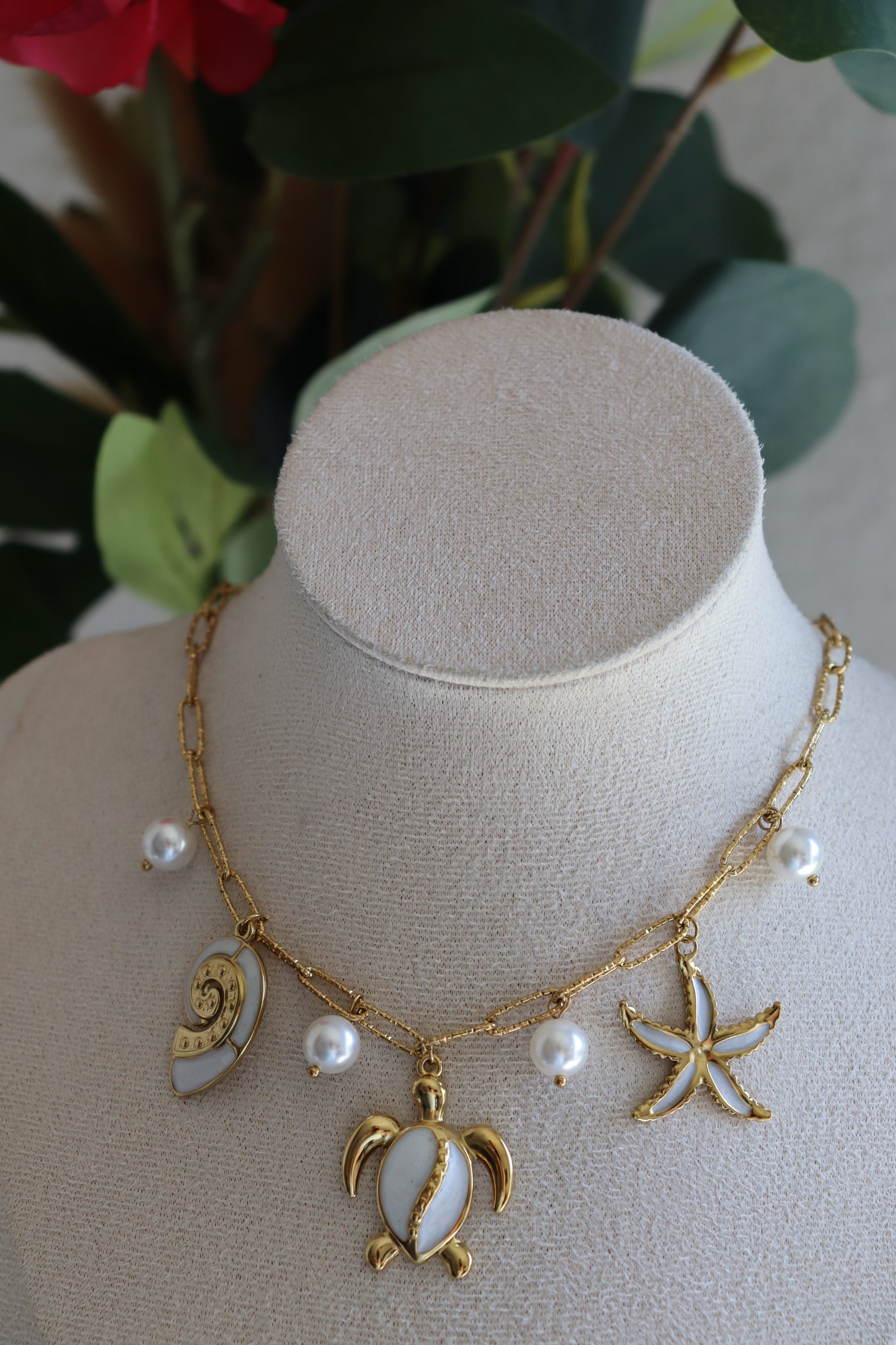 Le collier Multi-breloques Catherine est en acier inoxydable, ne change pas de couleur.