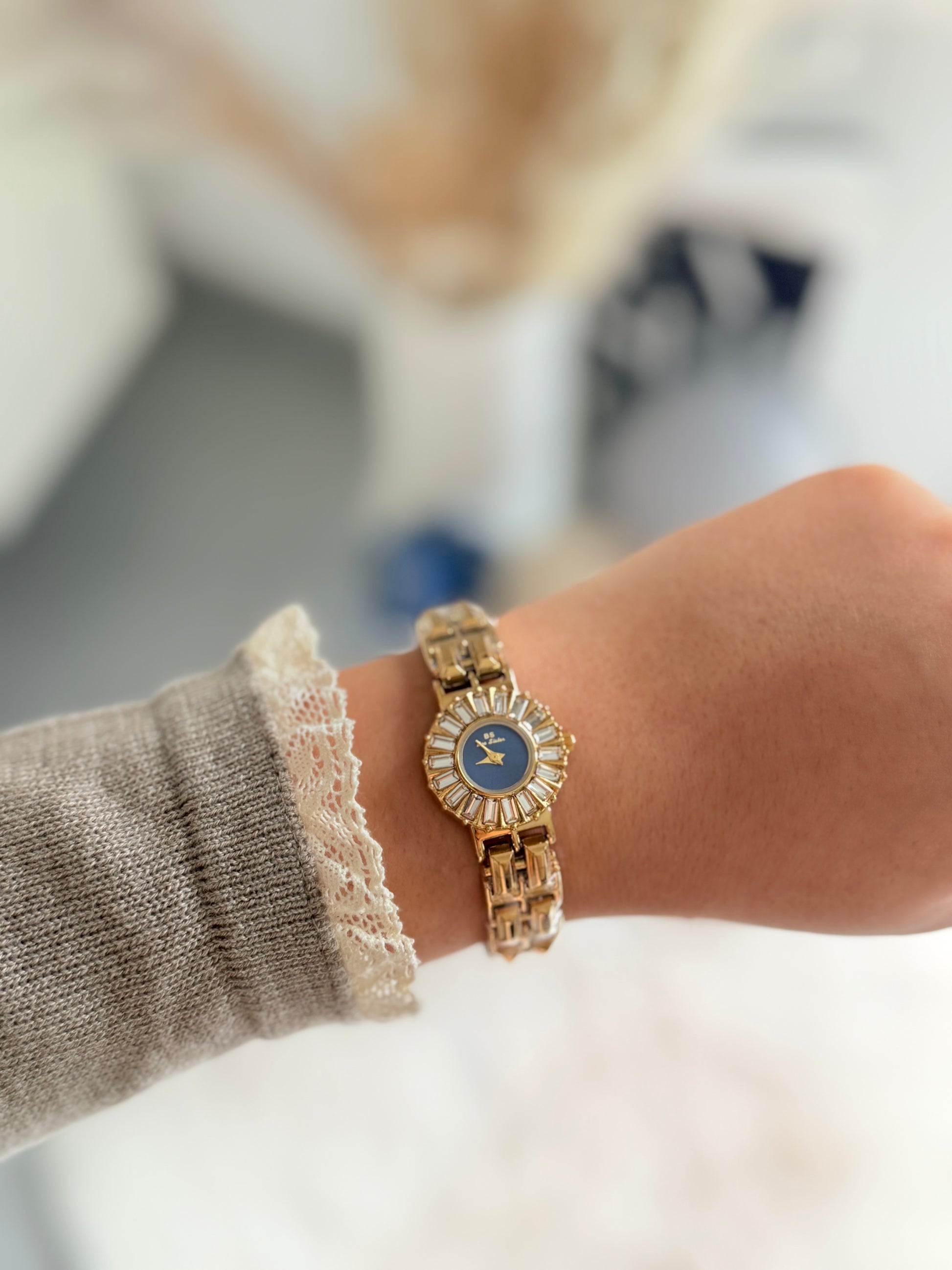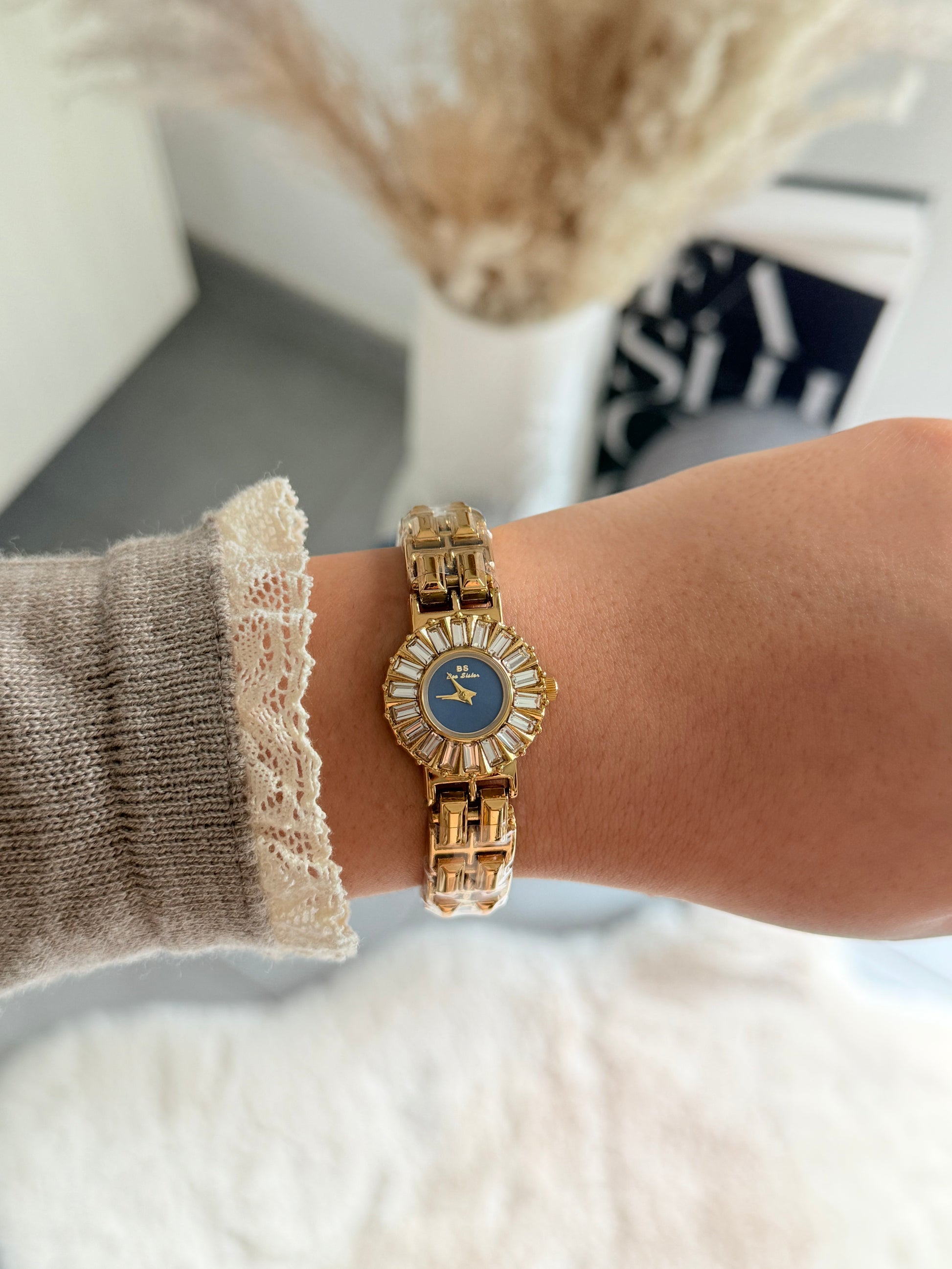 Cadran bleu roi , bracelet doré , petit Cadran rondes 💙 Incrusté de Zircon alliance parfaite entre elegance et sophistication.