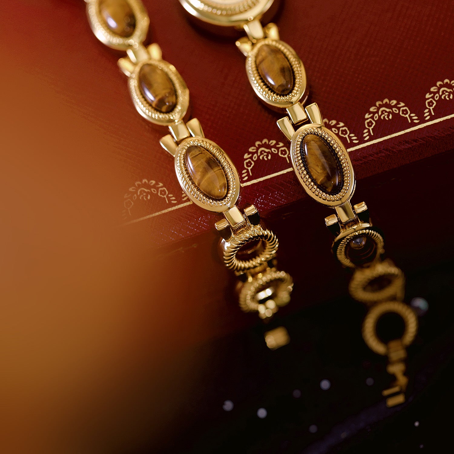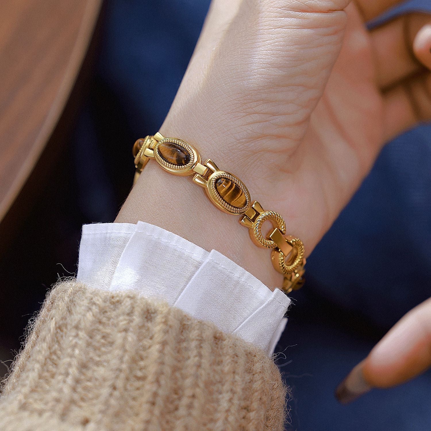 - Montre composĂ©e de pierre naturelle : Ćil de tigre.Â