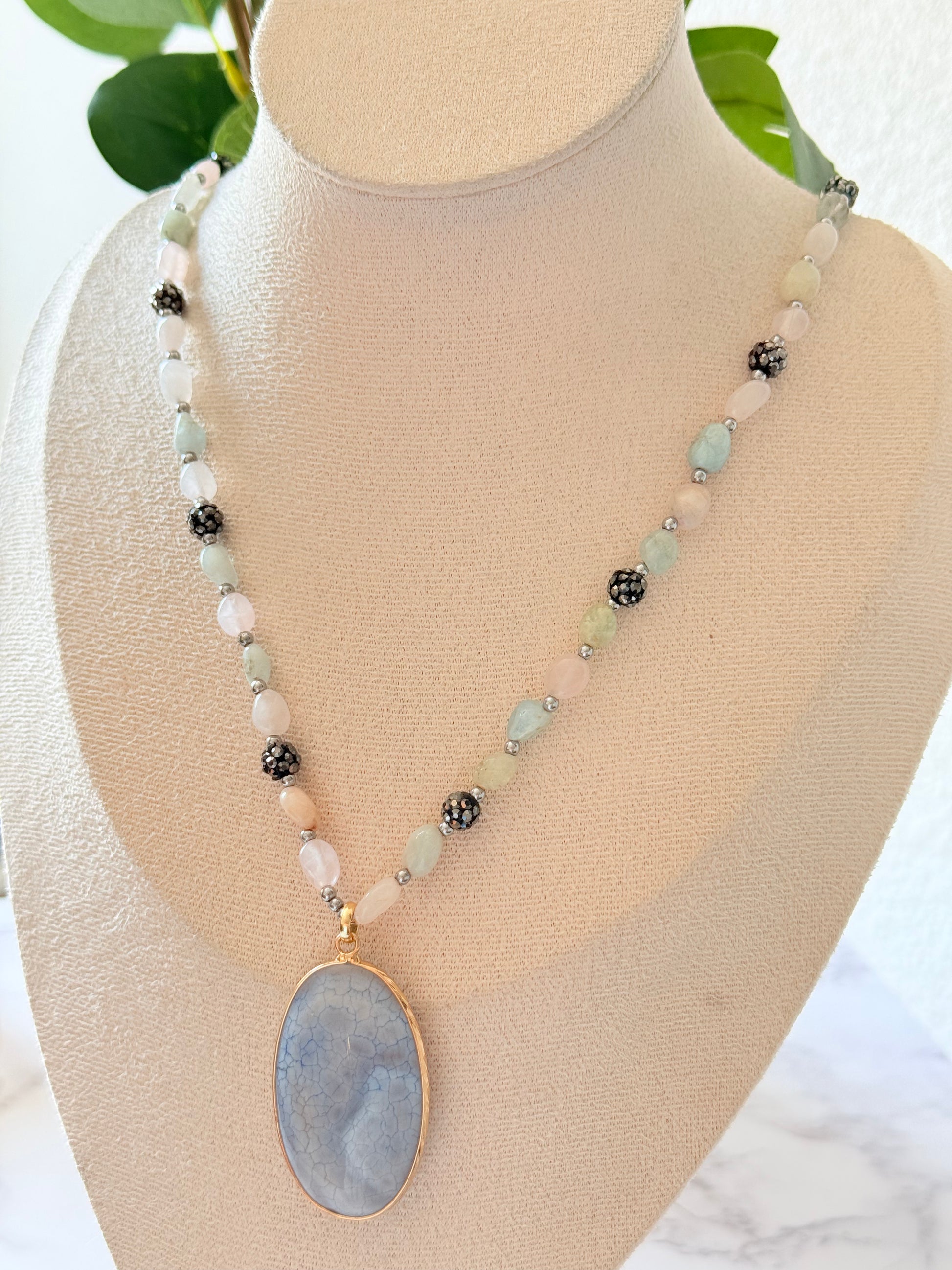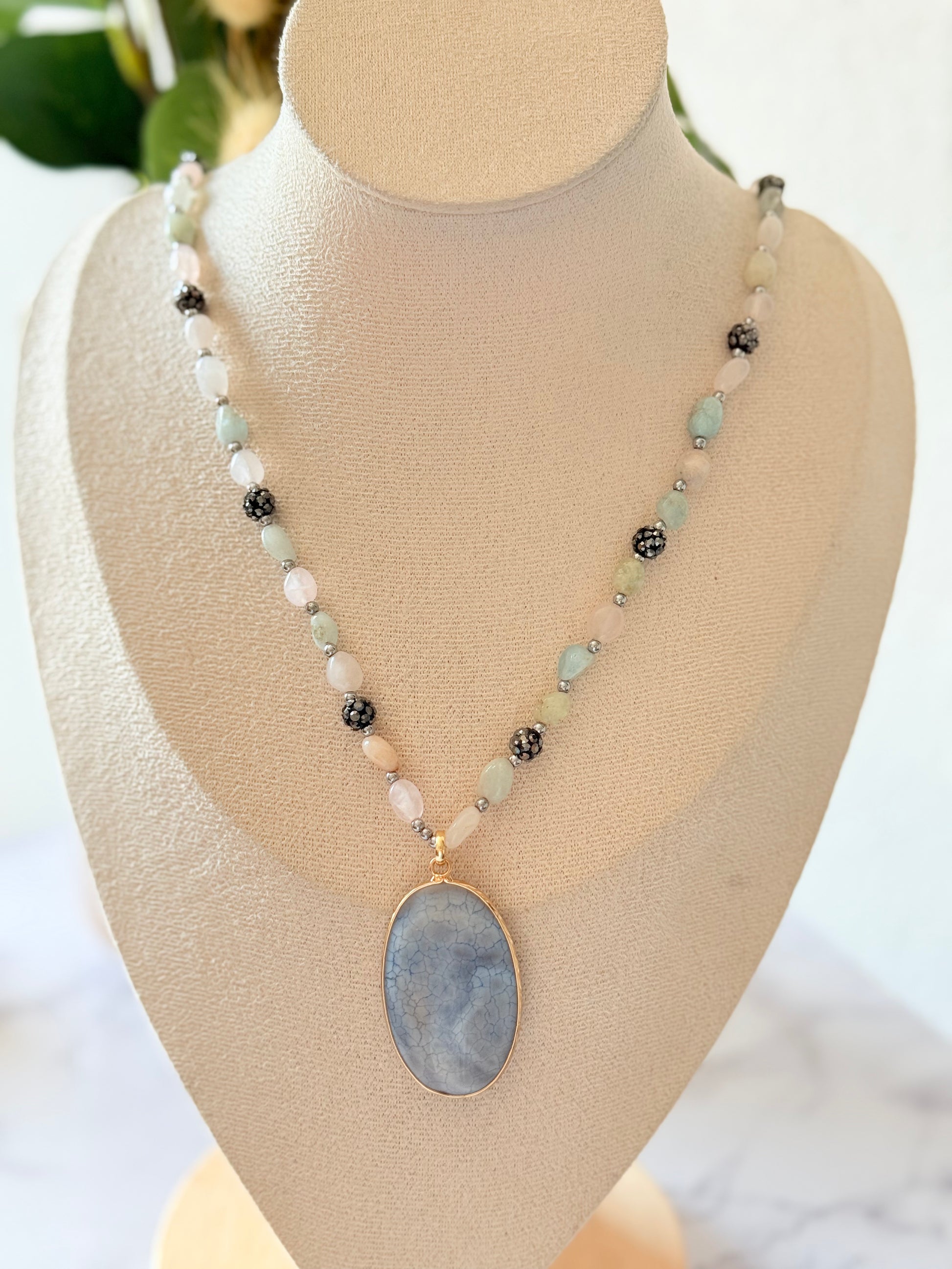 Sautoir en pierres naturelles et pendentif violet ✨