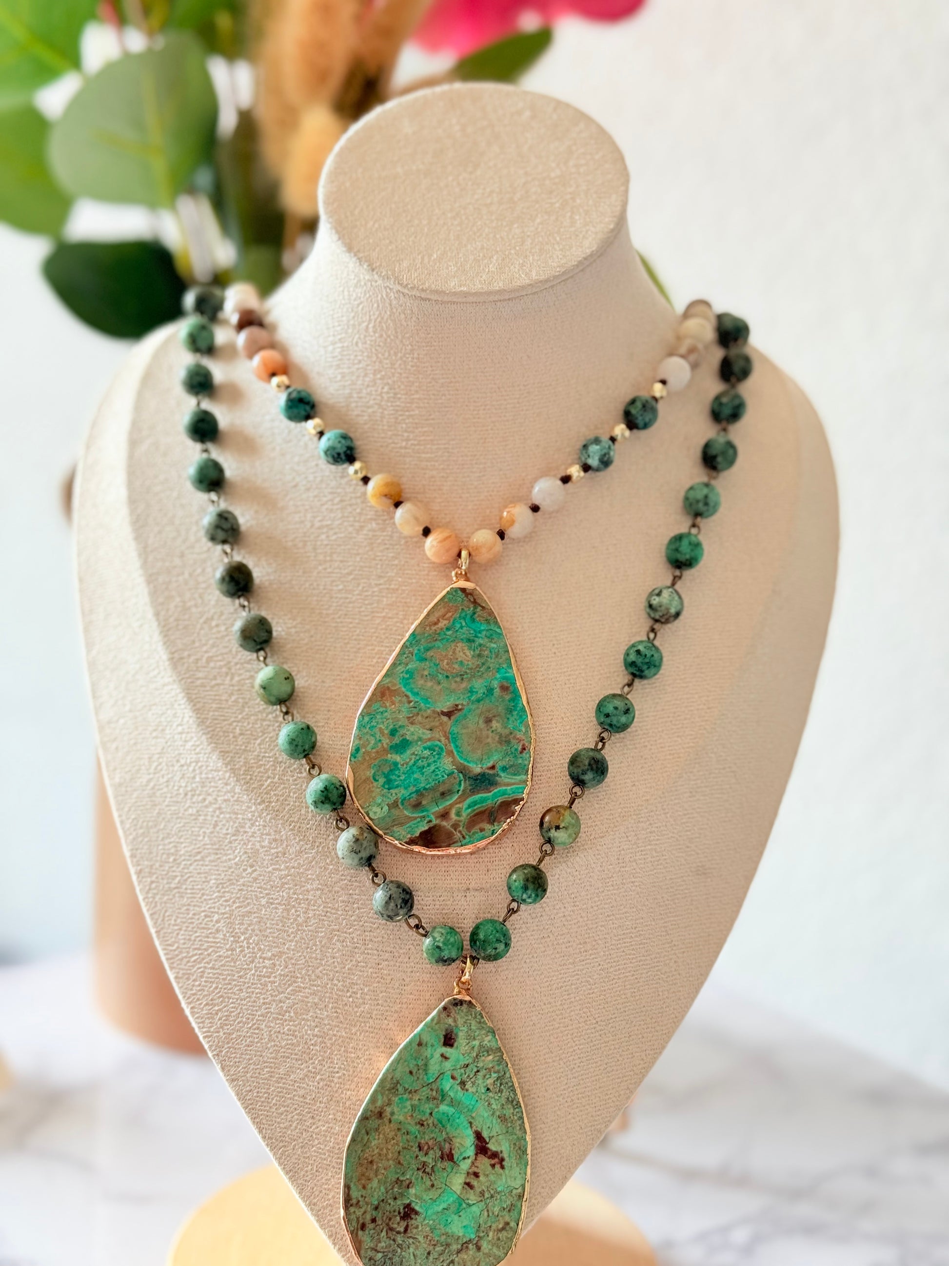 Sautoir en pierres naturelles avec pendentif goutte – Modèle B